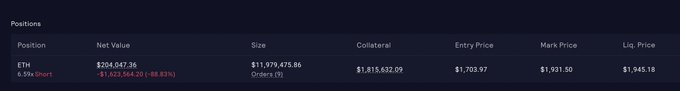 ❤️💛💚💙 #Ethereum shorter is (-$1.6 million usd) offside