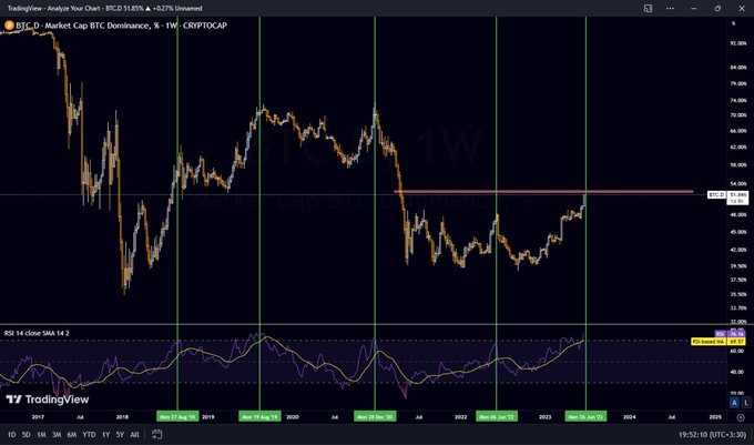 دامیننس بیتکوین با توجه به رابطه rsi با دامیننس و