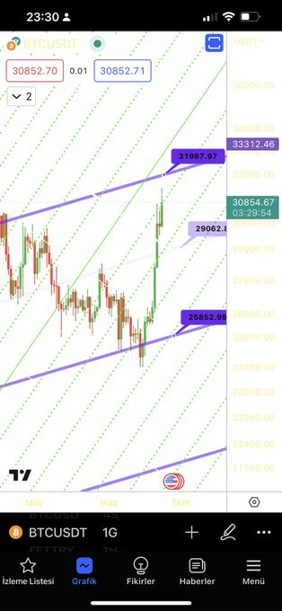 #btc haftalık direnci mor hattı test edebilir ancak