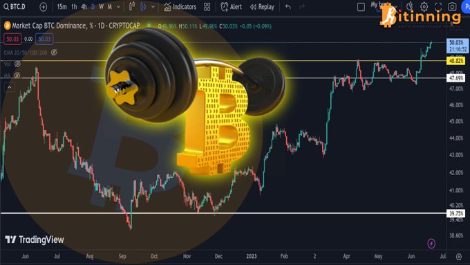 🚨 BREAKING🚀: #Bitcoin Dominance skyrockets above the