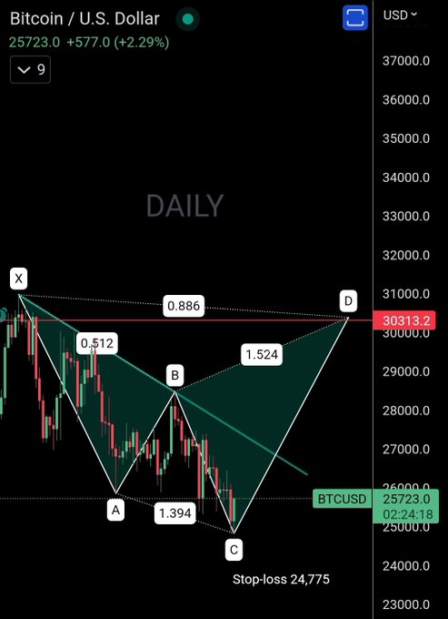 Potential shark harmonic pattern developing on Bitcoin