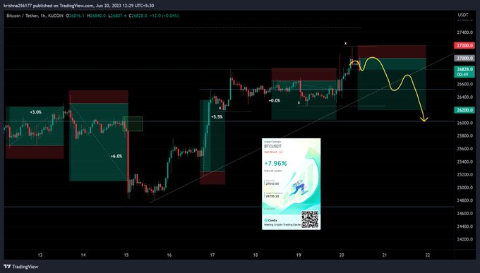 $BTC | 1H: Today Plan GM. Shorting from $27,000. Monday's