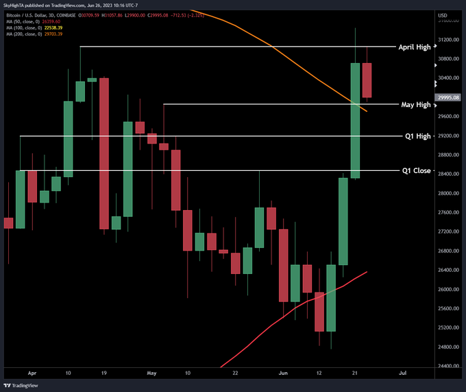 $BTC holding above the May high and 3-day 200 MA https://t