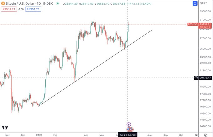 🟠🚀BTC is up 10% on the day to $29,500. Are you behind