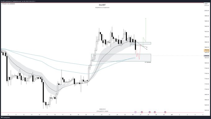 $ETH - Bid H1 Demand confluent with H4 100/200 Should