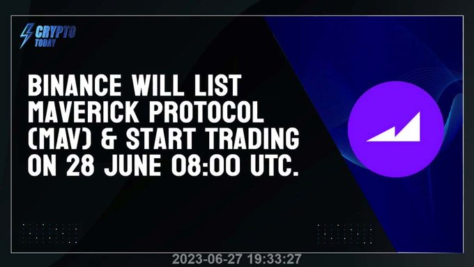 币安将于2023年06月28日16:00(东八区时间)上线Maverick Protocol(MAV),并开放MAV/BTC、MAV/USDT、MAV/TUSD交易对。现在可以在ARB上抄个大底! https://t