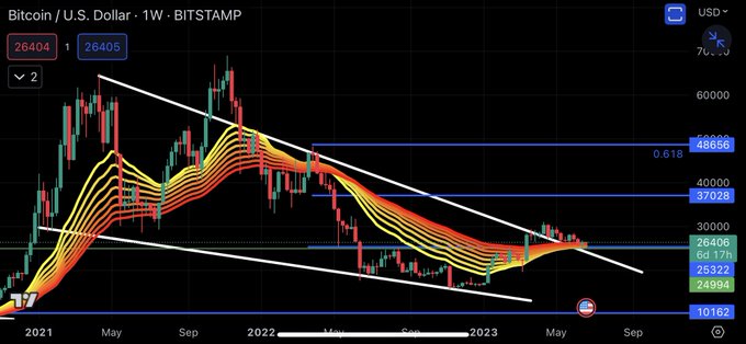 BTCとりあえず上抜けだけど、飛び乗りは危険🚨 26500ドルくらいまで引きつけたいけど、そのまま上がっても不思議ではない。 👉