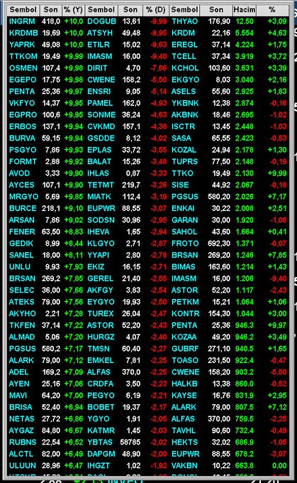 #günsonu #varant #xu100 #xu030 #hacim #yükselenler