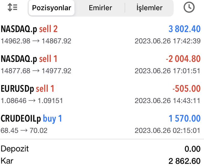 26.06.2023 Gün Sonu Raporu ✅ 🔵2 🔴2 💰 𝟐.𝟖𝟔𝟐 💲. 𝟕𝟒