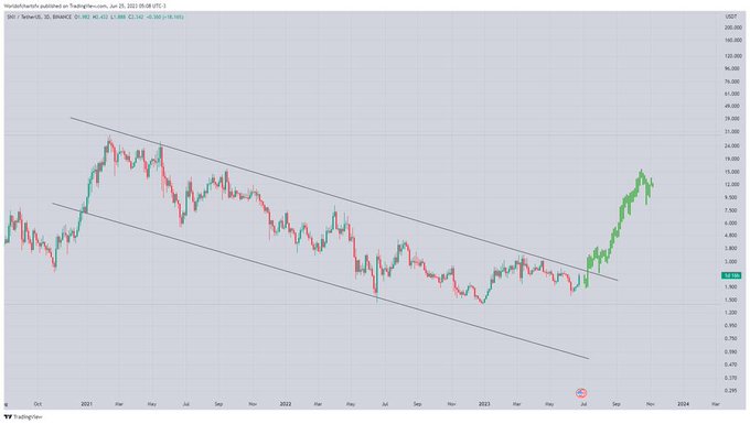 #STEPN #AI #web3 #btc #gmt 6/26 日足 $GMT 線は何本も隠してるが良い調整が入り教科書通りの三尊ネックラインまでの戻り局面 仮に上げるのなら逆三尊イメージを $bch