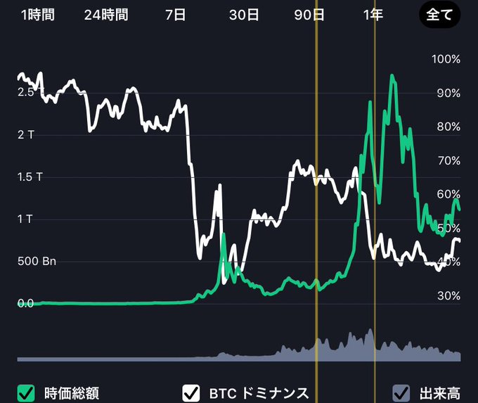 ステブル増と実態とB.D観点からしても過去の60-70クラスは行かんとて既に48手前ならアルト墓の数値≒底てのは推測しとかなかんね👦 #BTC