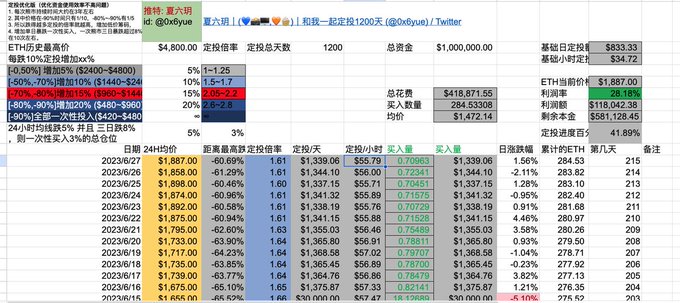 #BTC #ETH #定投 #夏六玥 坚持定投的第215天 😺已定投 284 ETH 🐈定投均价 $1472 😝总利润