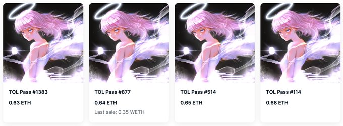 ✅TOL Pass 現在のフロア価格は0.63 ETHとなっております✨ プレゼントしたものを新規出品されて悲しいけど、本当に欲しい人にお迎えいただけますように🕊️✨ 日本一優しいコミュニティーで待ってます👧🏻🌈✨