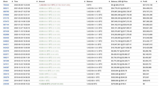 10 yıldır uykuda olan bir BTC balinası, 1.432,93 $BTC