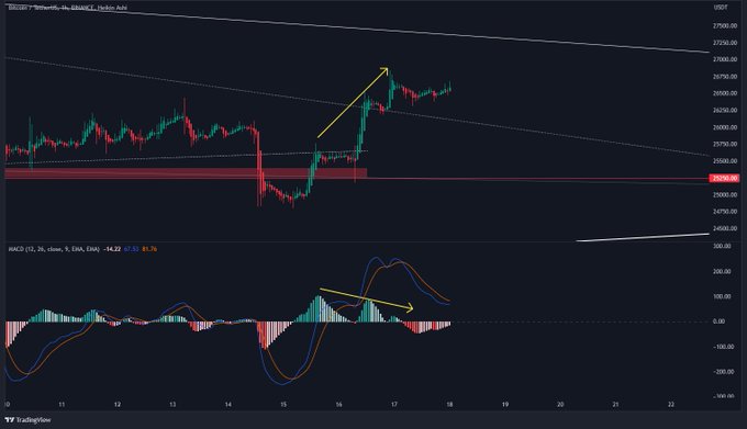 #Bitcoin / 4H - $BTC yükselen trend ve yatay destek
