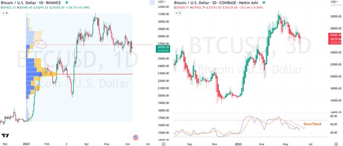 $BTC Chart A : $26.8k is resistance marked on left Chart