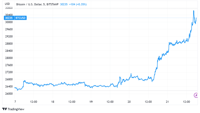BTC is up more than 8% on a day that Powell confirmed