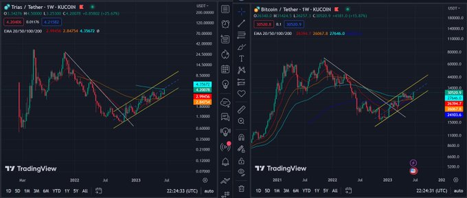 $TRIAS and $BTC weekly chart are pretty much the same