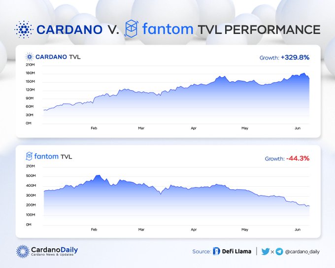 CARDANO V. FANTOM TVL PERFORMANCE In terms of TVL