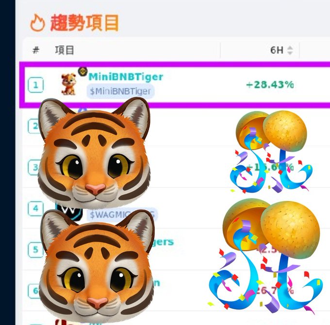 🔥🚀 #MiniBNBTiger is now TRENDING as the TOP 1 on https://t