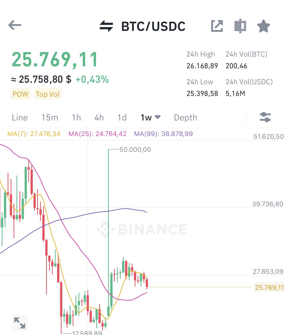 In caz ca nu stiai BTC/USDC 50,000$ Pe spot Binance
