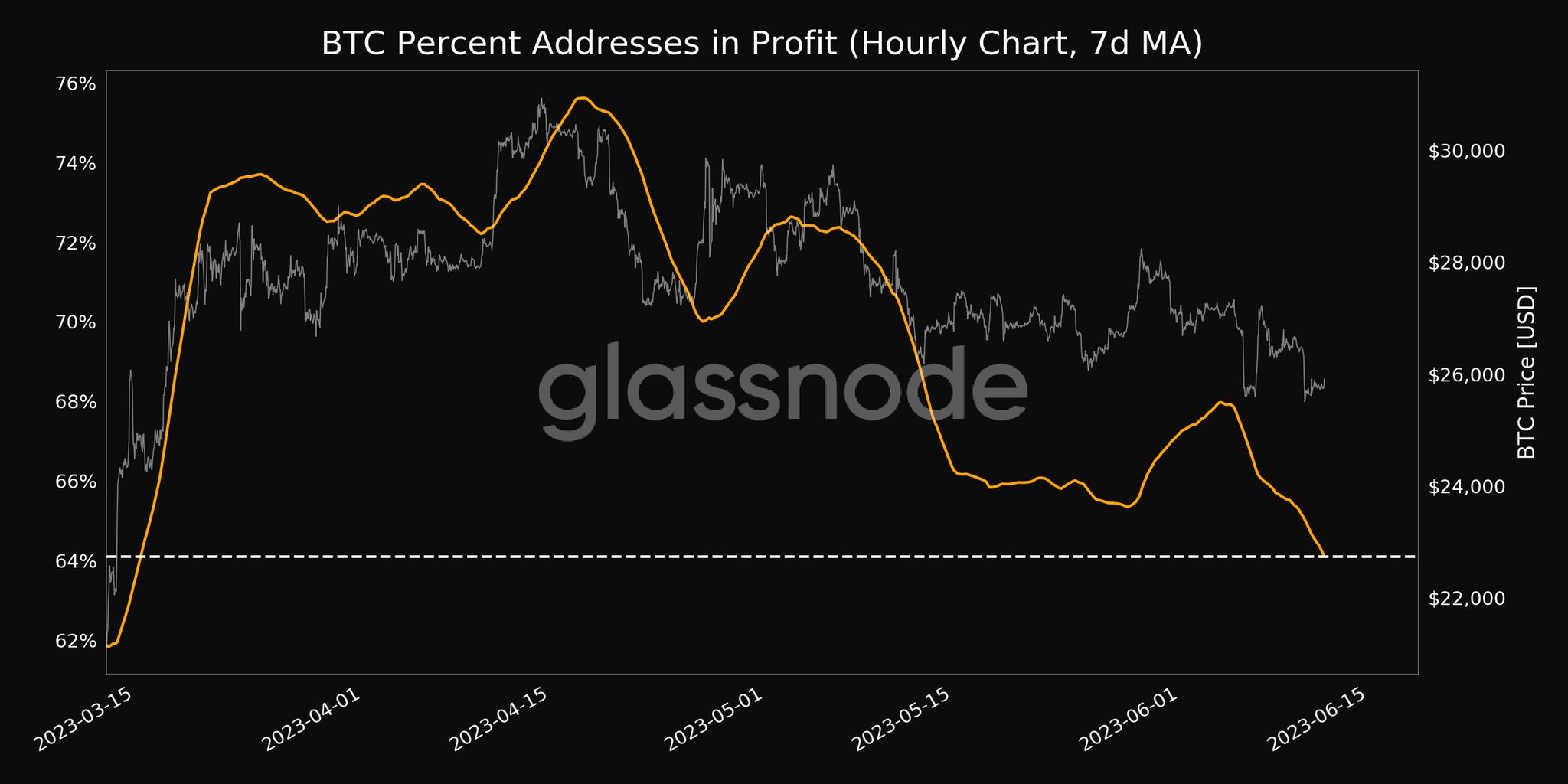 📉 #Bitcoin $BTC Percent Addresses in Profit (7d MA)