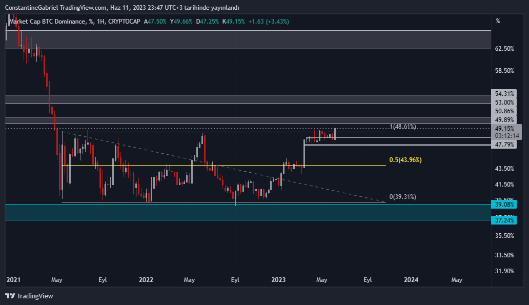 #Btc Dom göstergesinin nefesi tükeniyor brolar. Fiyatın