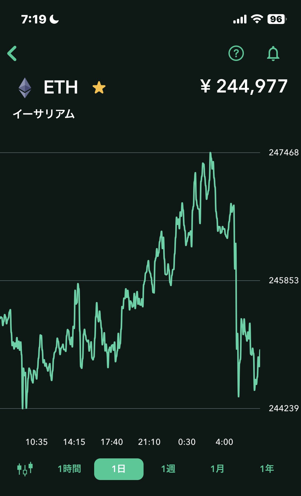7時19分現在 今日のETH 「244,977円」 24万円台をキープしています。 https://t